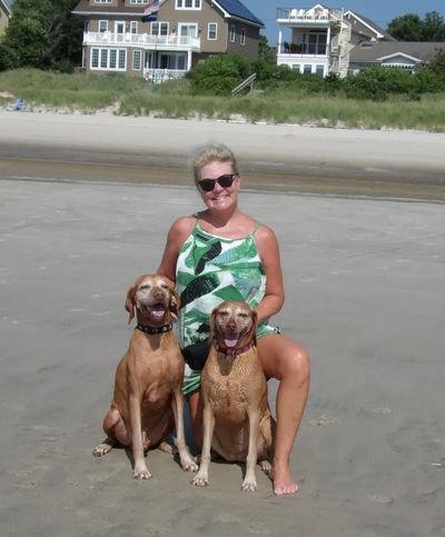 In the back of the studio is 'Kathy's Closet'. A retail boutique where you'll find new as well as hand selected resale pieces of furniture, clothing and accessories (beware ~ dog hair comes with our resale pieces ;)... because this space is also a place where the Vizsla kids hang out (Kathy's 2 older, loving, adorable dogs, Zeke & Roxy), because a Beach House is not a home without them!